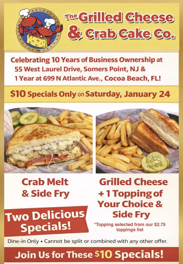 As soon as I walked in to the Grilled Cheese & Crab Cake Co. in Somers Point, I said to myself, “Boy, this feels like the kind of place Guy Fieri would love.”